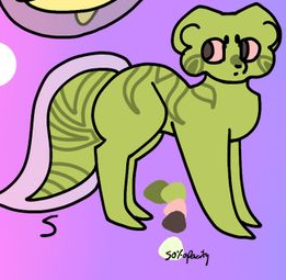 Appearance: A seaweed-green Catalotl with darker pickle green stripes. Has Maroon/Red eyes and a Yellow-ish green tail frill.