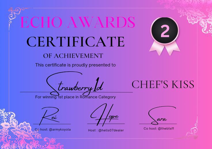 🏆 2nd place winner in the Echo Awards 2024- in Romance Category hosted by Hells07dealer