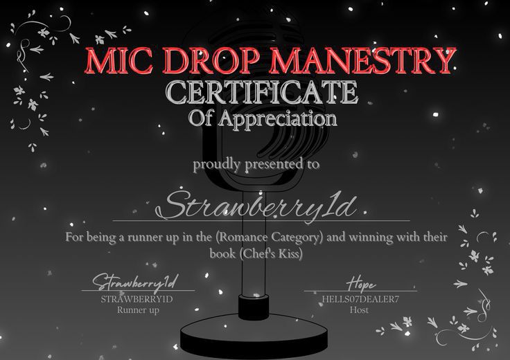 🏆2nd place winner ( runner up) in the Mic Drop Manestry Awards 2024 Romance category hosted by Hells07dealer7