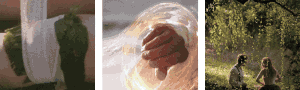 He picked up the bandage carefully, so as to not dirty it any further and placed it carefully on the leaves. While she held them in place, he bound the cloth around her arm. From the corner of her eye she could see golden light appear whenever his hands came close to her skin. She sucked in a startled breath.