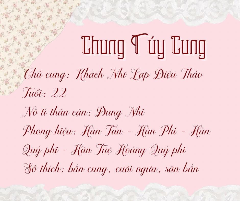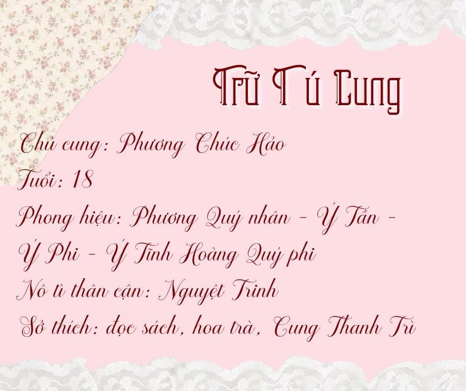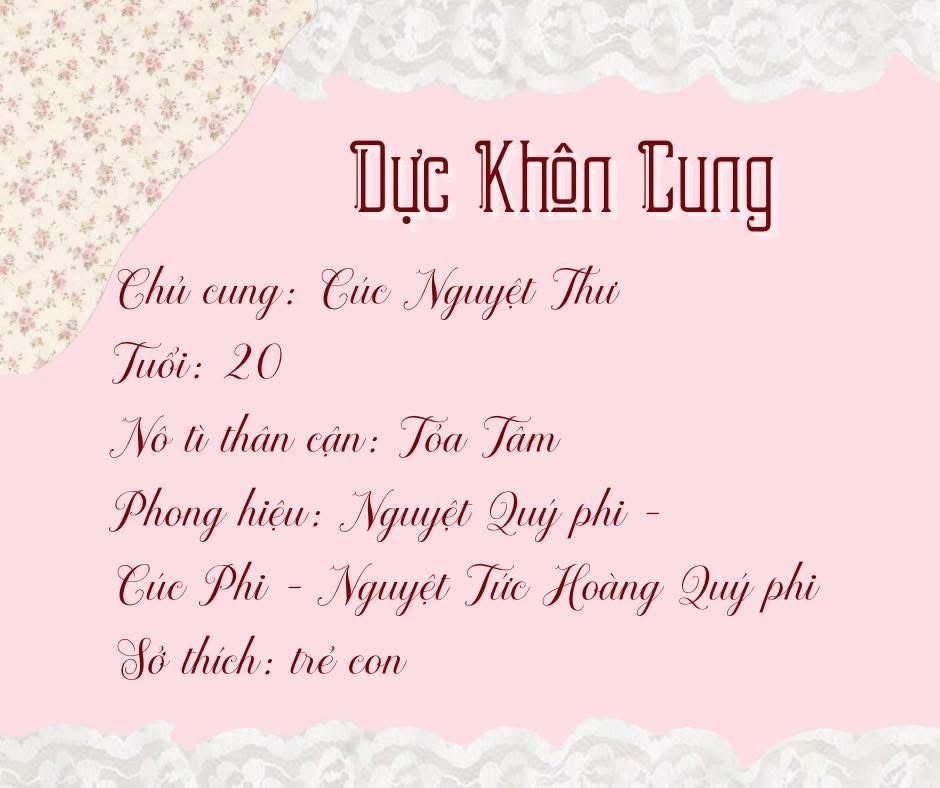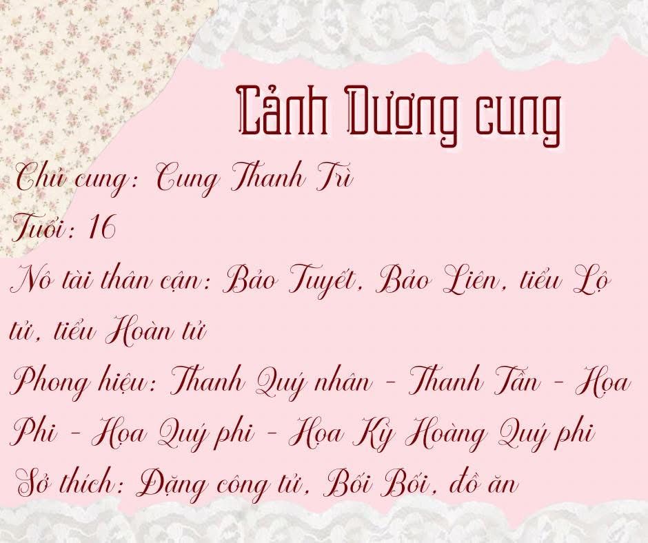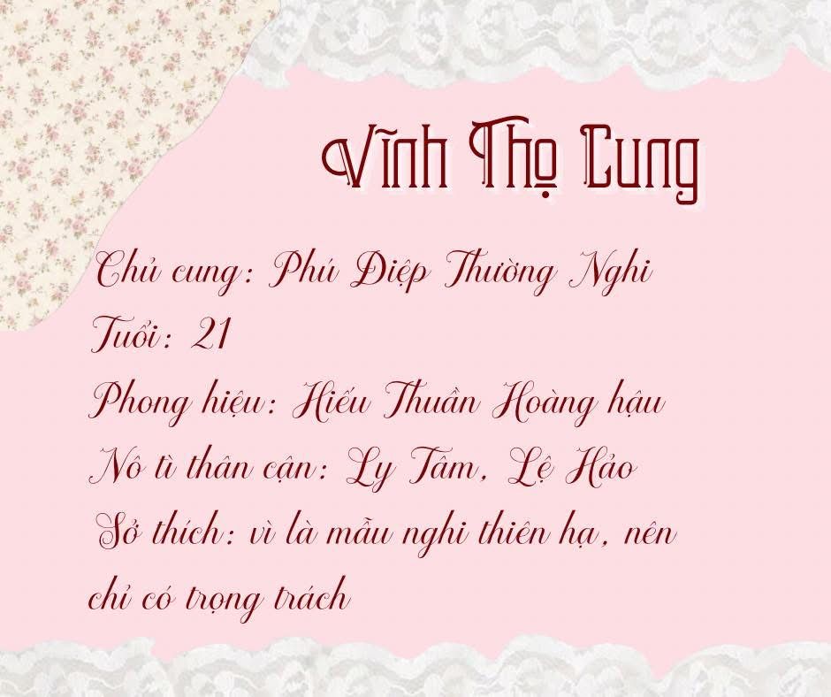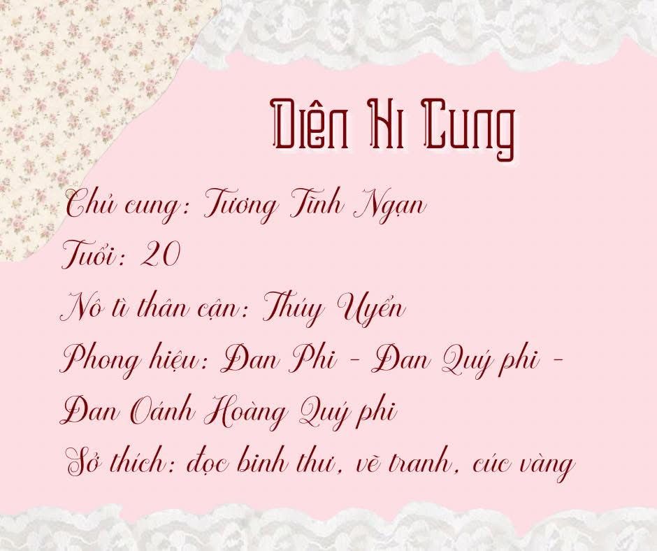 Vì fic thuộc dạng cung đấu nên mình lên chương tóm tắt nhân vật cho mọi người dễ theo dõi nha. Tuần sau sẽ cho ra chương mới, bỏ dở hỏng quen :))))