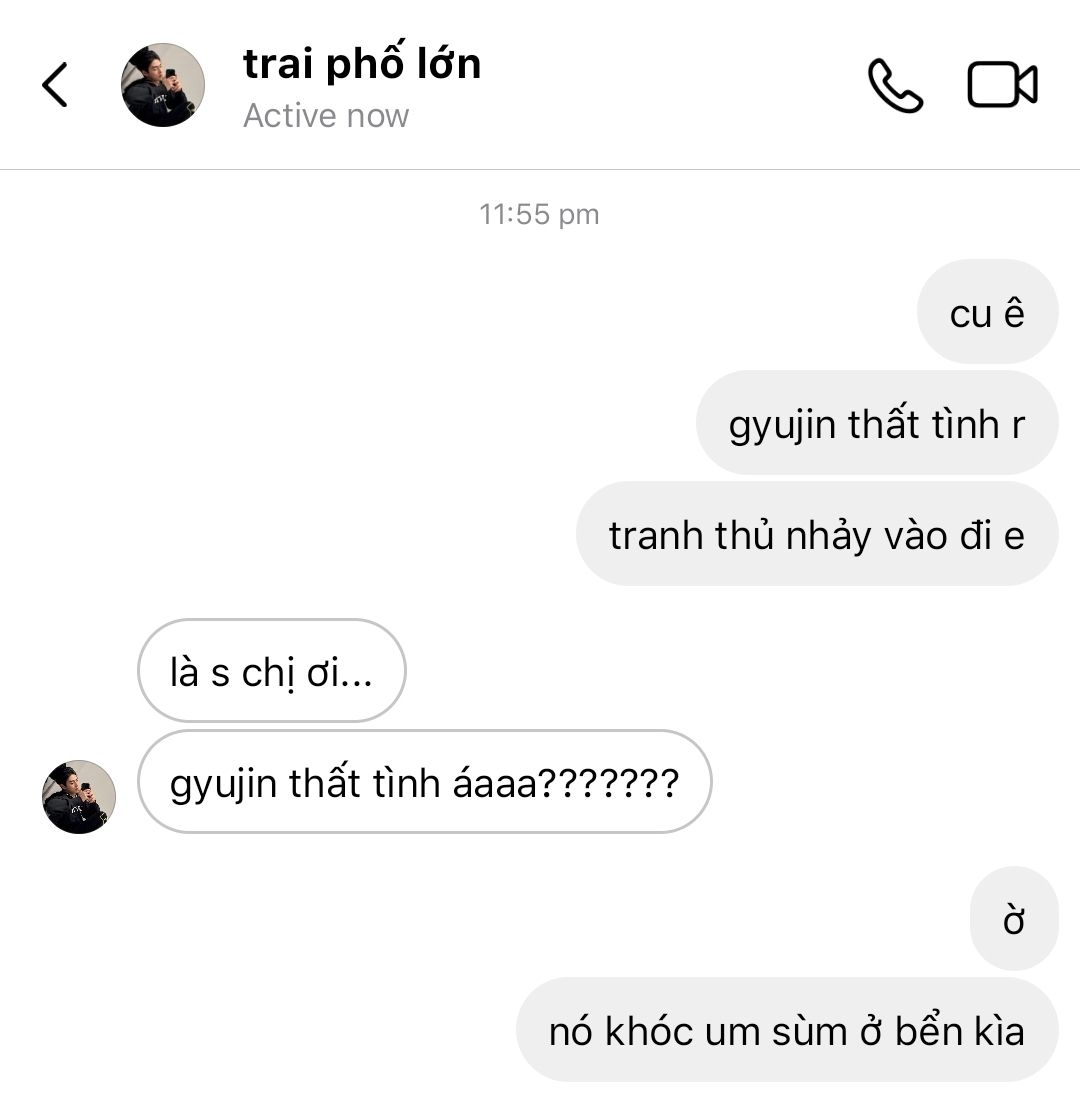 "nãy đéo né nhanh để gyujinie nghe thấy tim mình đập bịch bịch chắc toang mẹ luôn quá"