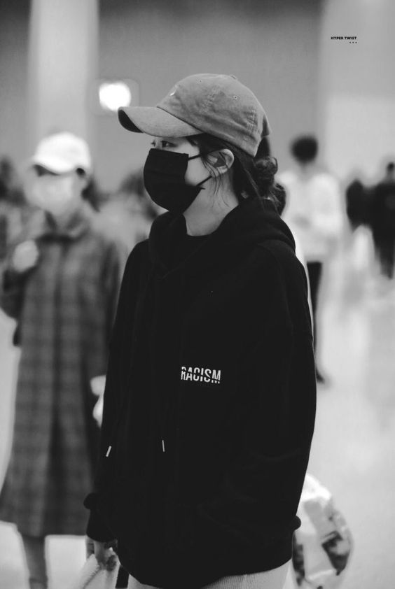 Seulgi đứng trong đám người đang hò hét cổ vũ ồn ào , cậu mặc hodie màu đen , mũ trùm kín đầu còn đeo thêm cái khẩu trang đen nữa.