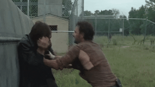 He went down the walkway and saw Rick and Daryl on the other end in a heated discussion about something. Curiosity got the best of him and he went up to ask what was going on.