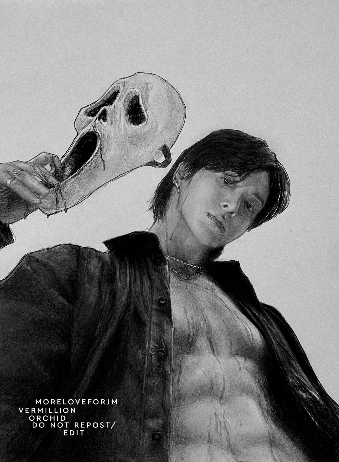 I look at it with wide eyes and then at Jungkook who's already watching me. His crosses his arms in front of his chest. His long wavy hair are a whole mess as he glares at me.