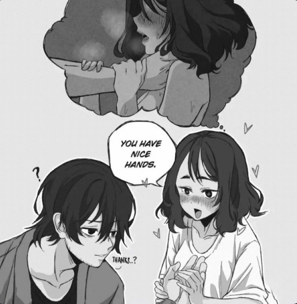 Hana is still shocked and the guy is trembling like a leaf. Fucking weakling, you're not even her type. I'm sure he doesn't even know her favorite color, movie, book, food restaurant and basically anything. He can never make her wild fantasies come true. He can never be what she desires for. Although he looks like a green flag from outside, but Hana and I, we both know that she doesn't like a clean polished mama boy as her lover.