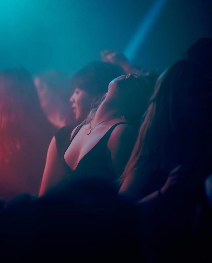 The loud music from inside shakes the floor beneath us as me enter the place.