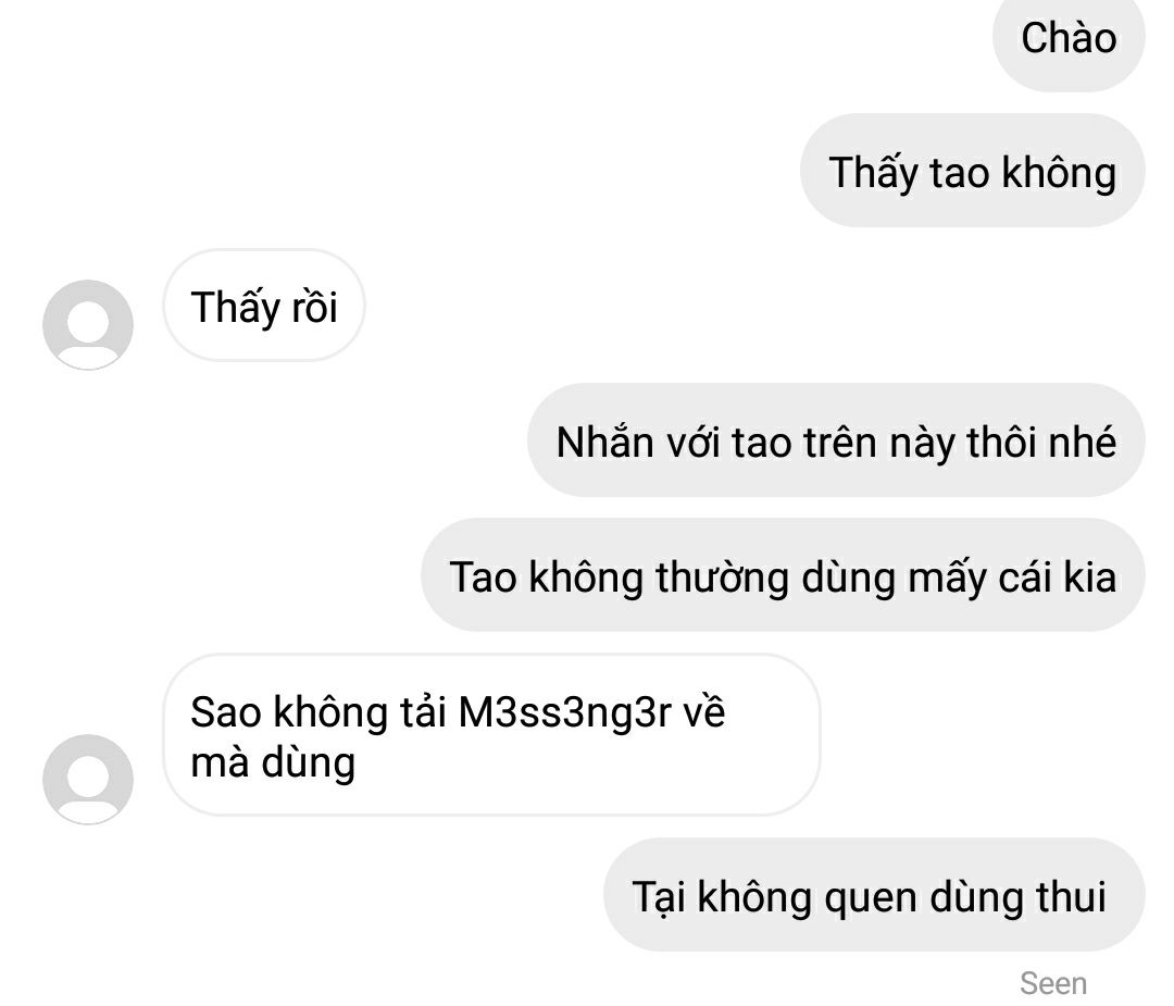 "Đây. Tìm đi, có gì nhắn tin với tao trên đó."