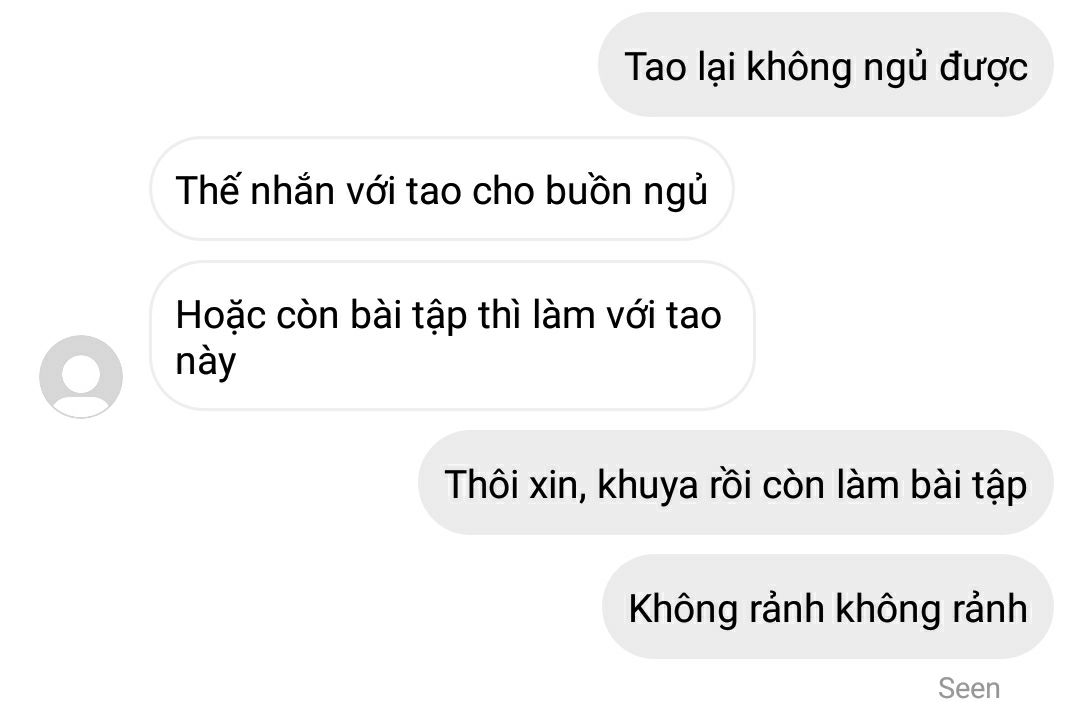 "Thấy mày ngủ nên không dám gọi dậy. Còn nhiều lắm tao làm không xuể."