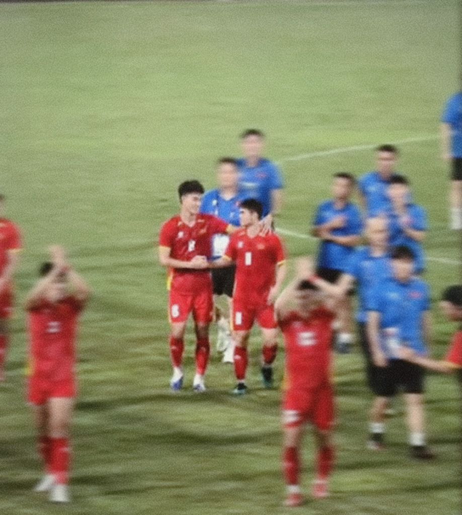 Văn Trường nắm lấy tay em, vì lúc này có quay đến hai bạn thì ai cũng nghĩ đơn giản là cái bắt tay động viên đồng đội thôi. Nhưng sẽ chẳng có gì để nói nếu Văn Trường không chịu bỏ tay bạn nhỏ ra, bất lực Văn Khang đành kéo tay ra và lẻn sang chỗ khác.