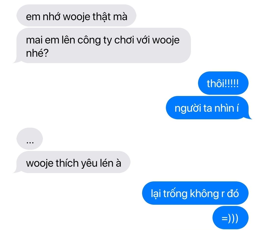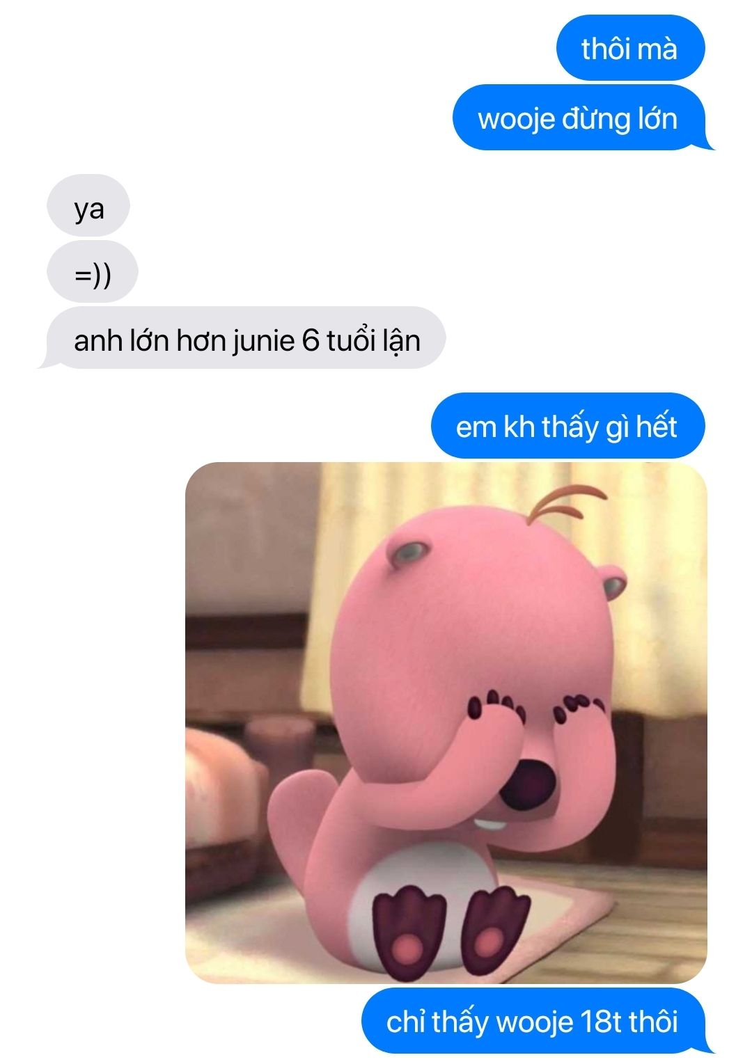 "wooje không xưng em nữa hả? anh thấy bé wooje đáng yêu lắm luôn í"