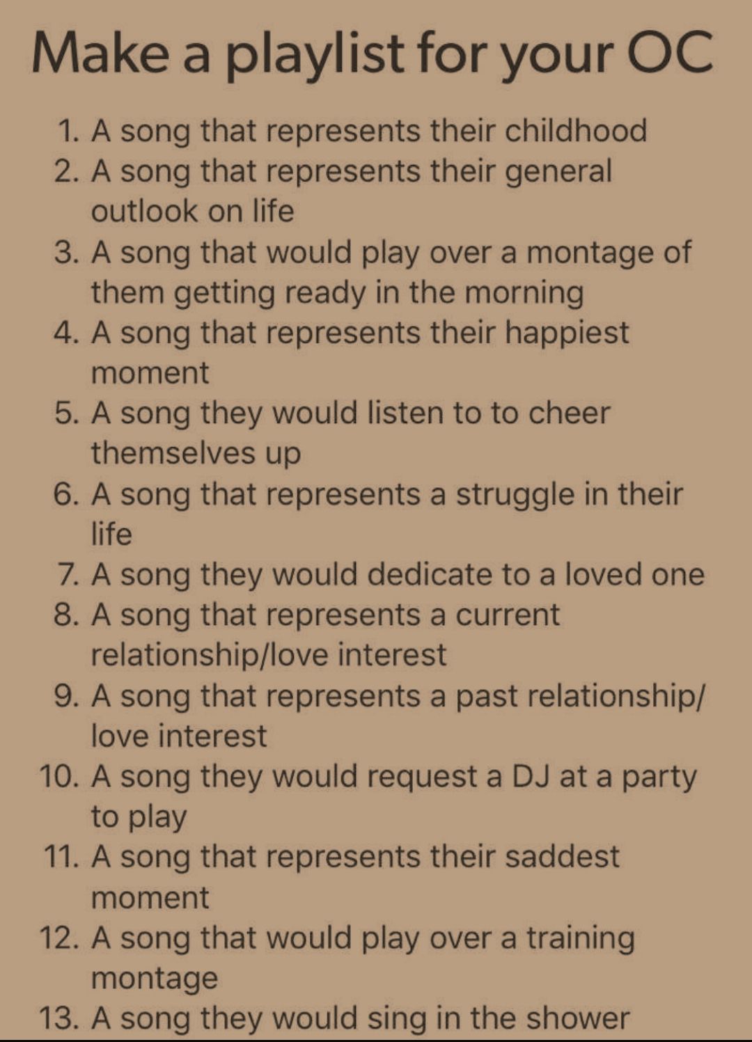 I'm gonna do that for Grace, my Oc in the Maze runner story, because I've never quite gotten the feeling that she's got an interesting character and she feels rather flat (at least in the first few chapters, before I got more comfortable with her) so maybe this'll help me.