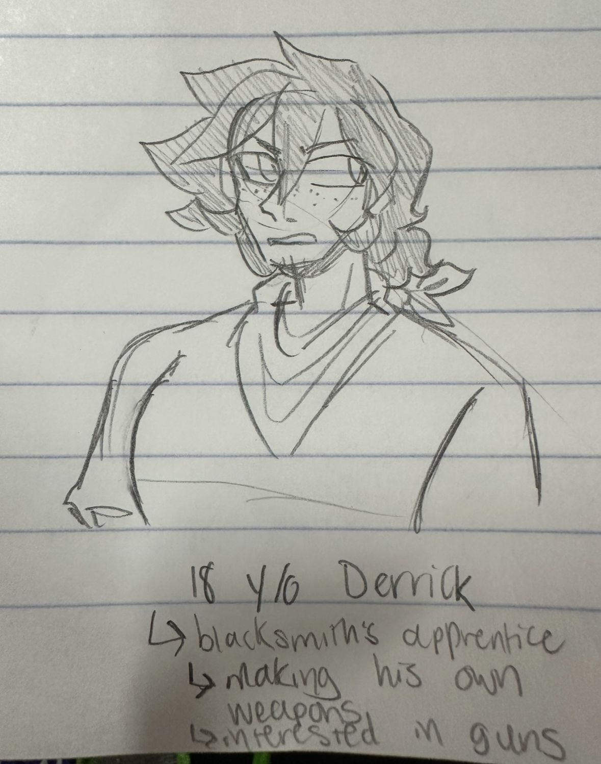18 year old Derrick, still not as rugged and cowboy-y but starting to think about crafting his own gun and stuff