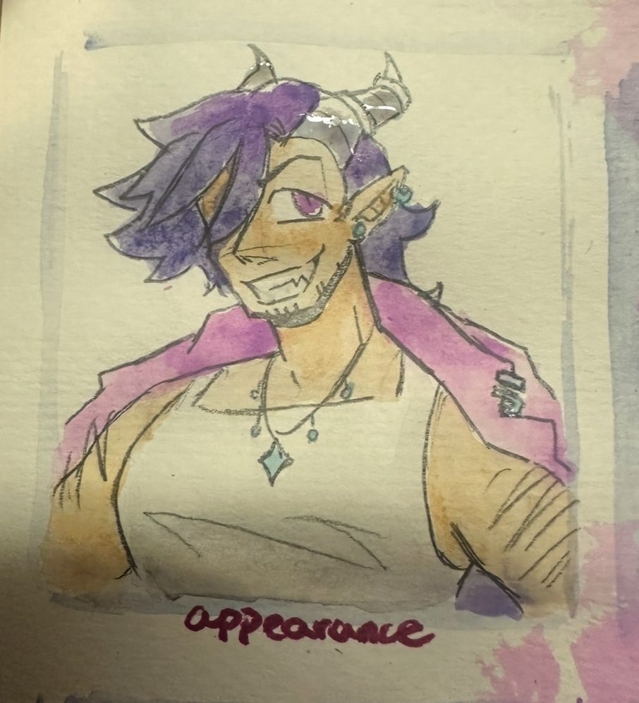Watercolor sketch I did bc I made his entire character sheet from scratch since I couldn't print one in time