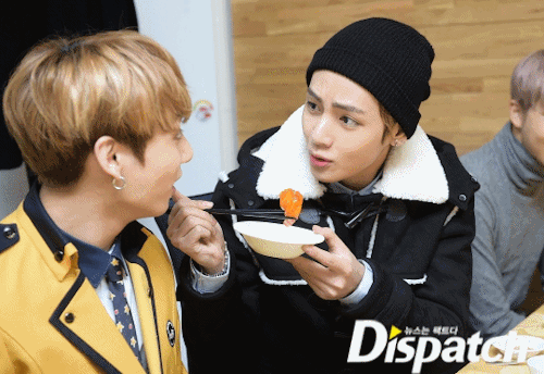 JungKook : Có lần... Em và V hyung trốn khỏi KTX để ăn sáng, nhưng vừa mới kêu món thì hyung quản lí lại điện đến và rất tức giận "HAI ĐỨA VỀ ĐÂY NHANH LÊN!!". Ban đầu bọn em có tí hoảng sợ nhưng trên đường về lại rất thong thả đùa nghịch. Và khi về, V hyung bị hyung quản lí xả một trận còn em thì không... Haha...
