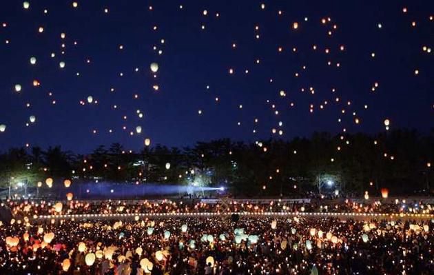Bầu trời tỏa sáng nhờ ánh đèn từ vô số chiếc đèn rực rỡ. Khung cảnh thật lãng mạn và tuyệt đẹp. Cảm giác như mình đang ở trong phim Công chúa tóc mây Rapunzel.