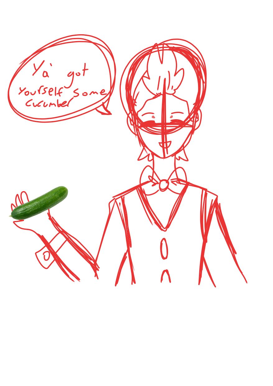 (I am so sorry, his eyes dont look like they're there, but the eyes are closed and kinda blend in to the guide lines XD)