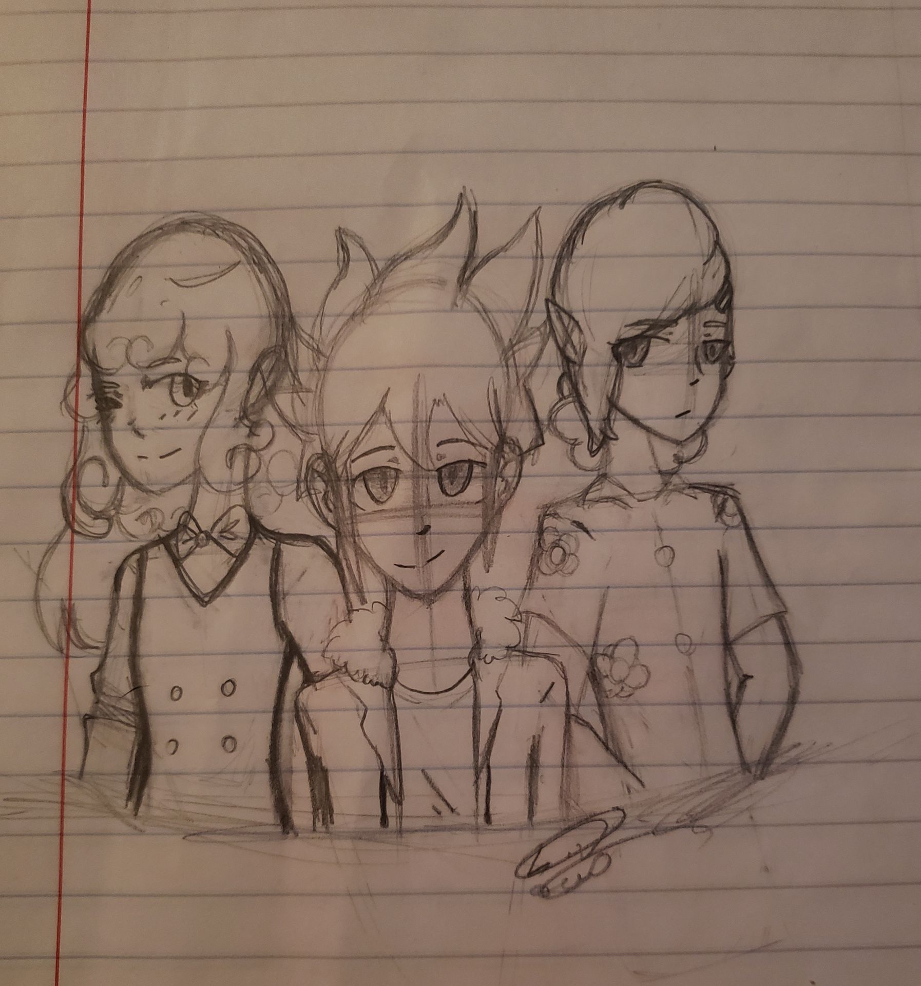 It may look a bit off in some places, well sorry, oof, I was drawing with a cloth on my hand for reasons I will not say. I was also drawing on a really old notebook, so that counts too!