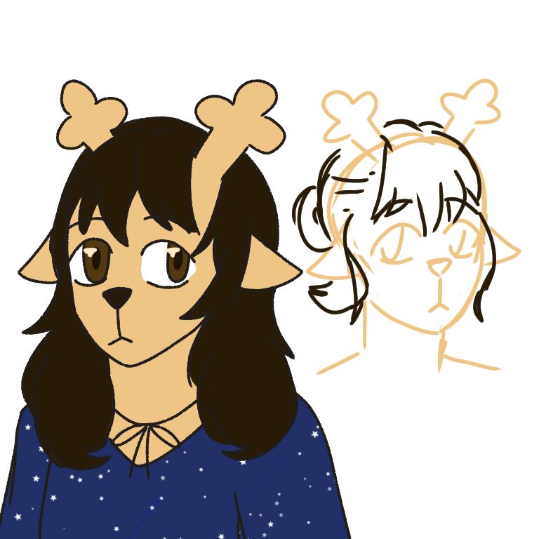 Also I did skip on the 2022(?) redesign bc I was NAWT gonna draw 3 instances. Also idrr what I looked like back then......????? I think that was short hair era maybe. I've never gone out of my way to change how I look other than cutting my hair when it gets too long :/ insert autism joke here. Anyway that's why the 2019/2025 mes have nearly the same expression too LMFAO. 2019 me didn't like Penni that much bc she was frustrated that she couldn't make a story for her that worked. So hunched shoulders, furrowed eyebrows, kinda judgemental expression. Ever since I moved her to D&D verse in 2022 though she's been making more sense ^_^ so 2025 me is more relaxed but still :/ bc that's just. How I am. ???? But if I could animate there'd be a slight change of expression at the end. To signify a change in relationship.