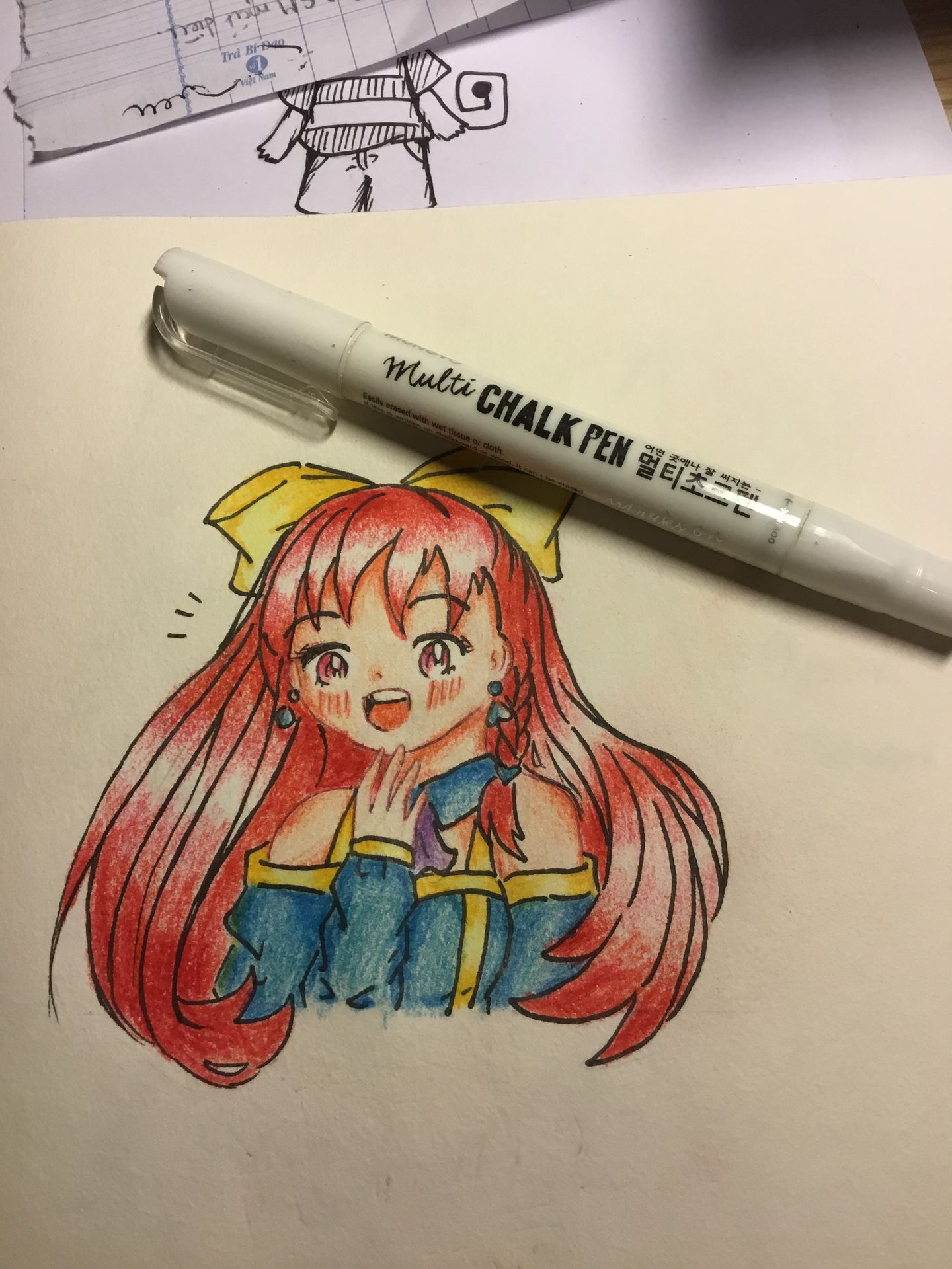 Các cậu có bút trắng thì cứ dùng nhé.Tớ thì dùng bút phấn "chalk pen" bởi vì tớ mò mãi không chỗ nào bán cả,lên mạng thì cứ bảo là hết hàng;;-;;