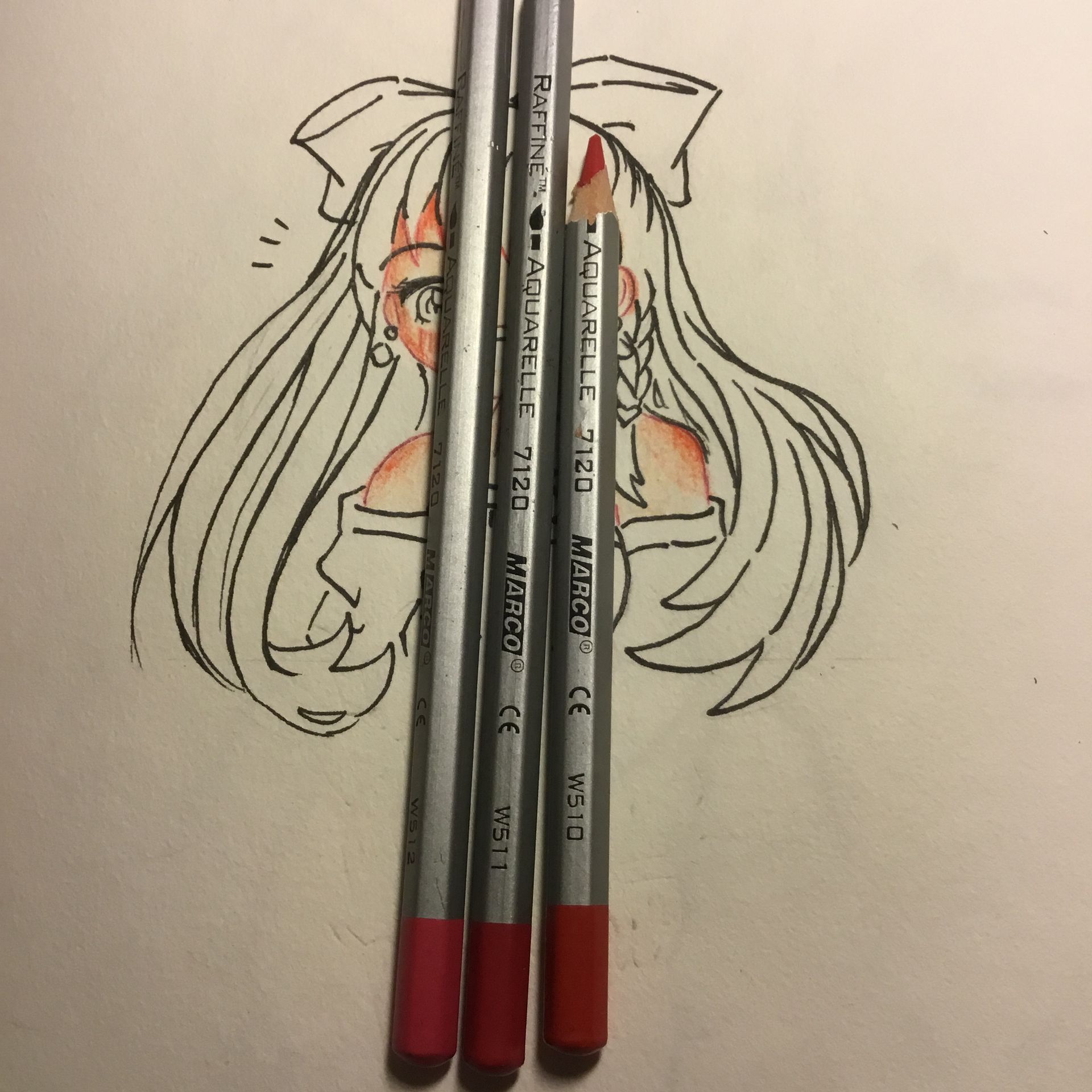 Rồi tẩy hết nét chì đi để tô.Đầu tiên là da.Hãy lôi hai màu này ra.