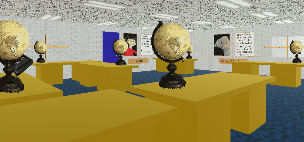 - Xin chào các em học sinh, tôi tên là Baldi và tôi là giáo viên chủ nhiệm của các em. Tôi có một câu hỏi dành cho cả lớp này: Hôm nay là buổi đầu tiên tới trường, các em có vui không?