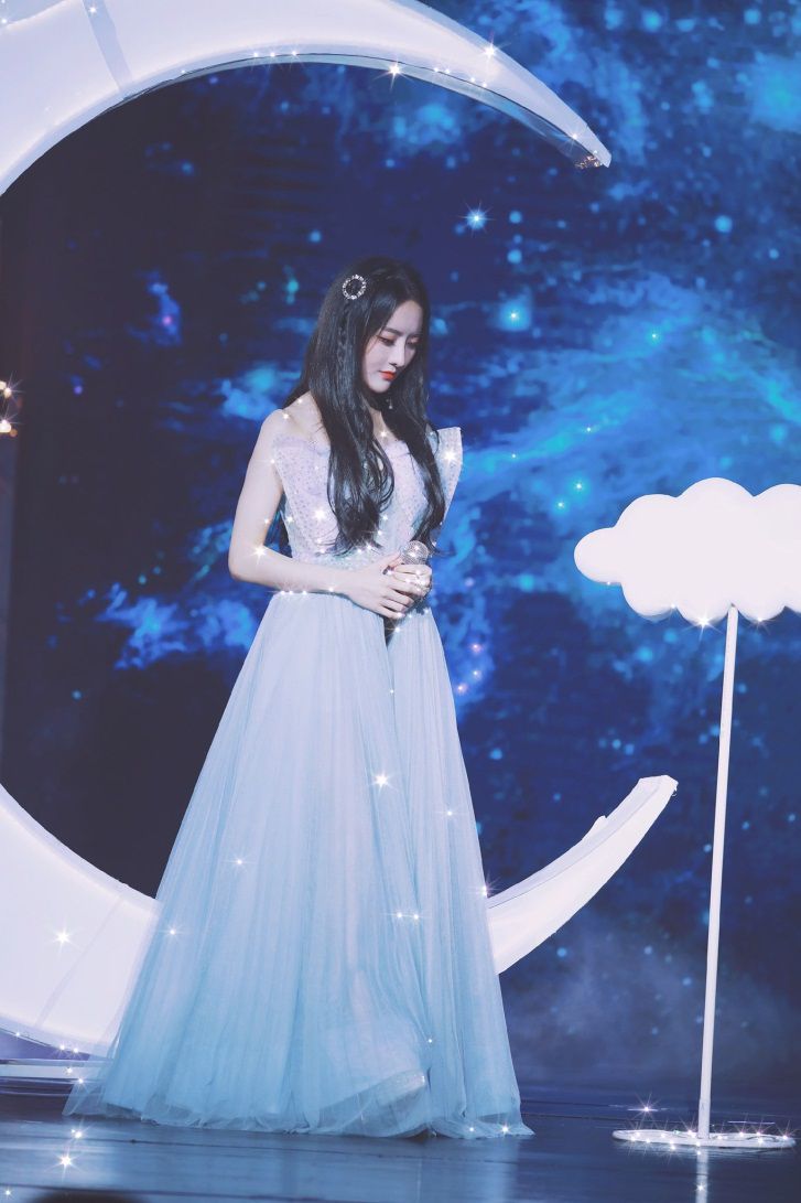 Mạc Hàn không nói gì cùng với những người hầu đem đồ lên phòng thay, một lát sau cô bước xuống trong bộ lễ phục cúp ngực màu xanh da trời nhẹ nhàng, tóc cô được búi lên điểm nhẹ trên mái tóc cô là một đóa hoa màu xanh cùng tông với váy, đôi giày màu trắng đính đá, từ hoa tai, vòng cổ, lắc tay trên người cô đều lấp lánh, rất đẹp.