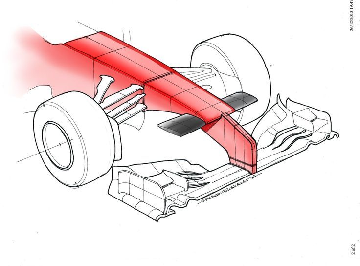 2. Side pod (két gió bên hông): Bộ phận hai bên thân xe giúp làm mát. Bên trái là kiểu zero-side pod (gần như không có), bên phải là kiểu bình thường.