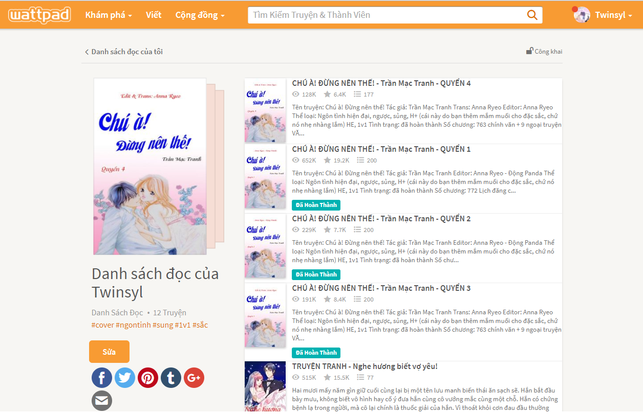 Tìm trong phần tác phẩm hay danh sách đọc đều có nhé =)