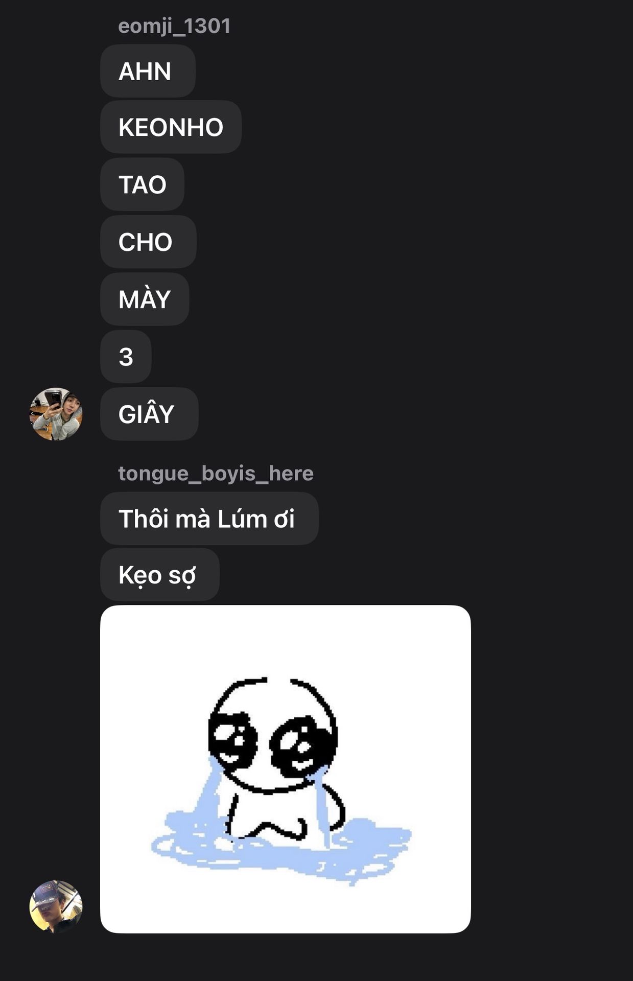 " Này Kẹo, đừng nói với tao mày nhắn tin với mấy tiền bối nữ của trường xong ghost con gái nhà người ta đấy nhá, thằng chó ? "