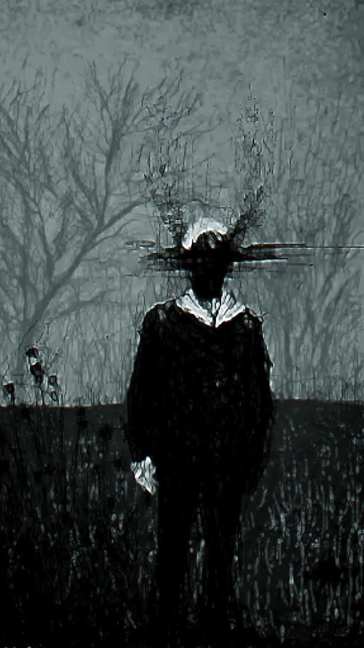 Người này mặc một bộ hoodie đen với chiếc mũ màu trắng đằng sau.Mặc dù vậy lại không thể thấy được khuôn mặt của hắn vì hoàn toàn là một làn khói đen bao trùm lên toàn bộ đầu cùng cả thân người hắn.Hắn lẳng lặng bước tới trước mặt hai người như thể chẳng có gì!