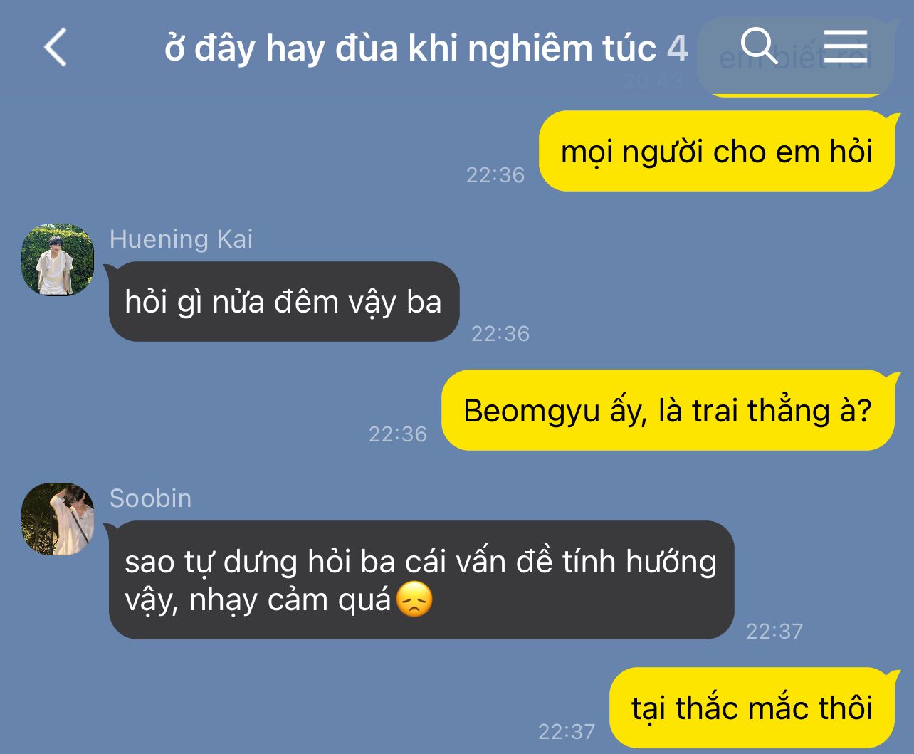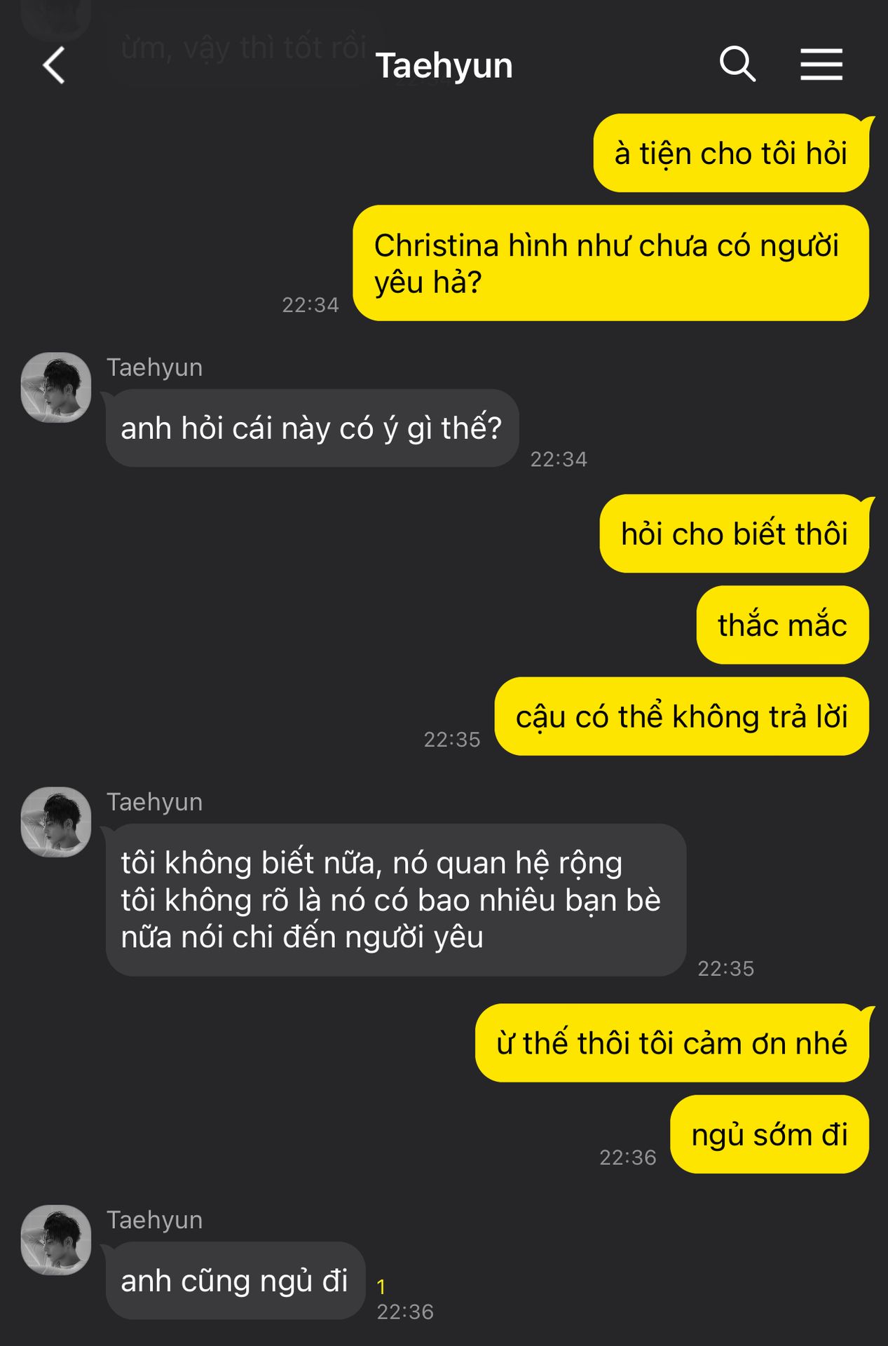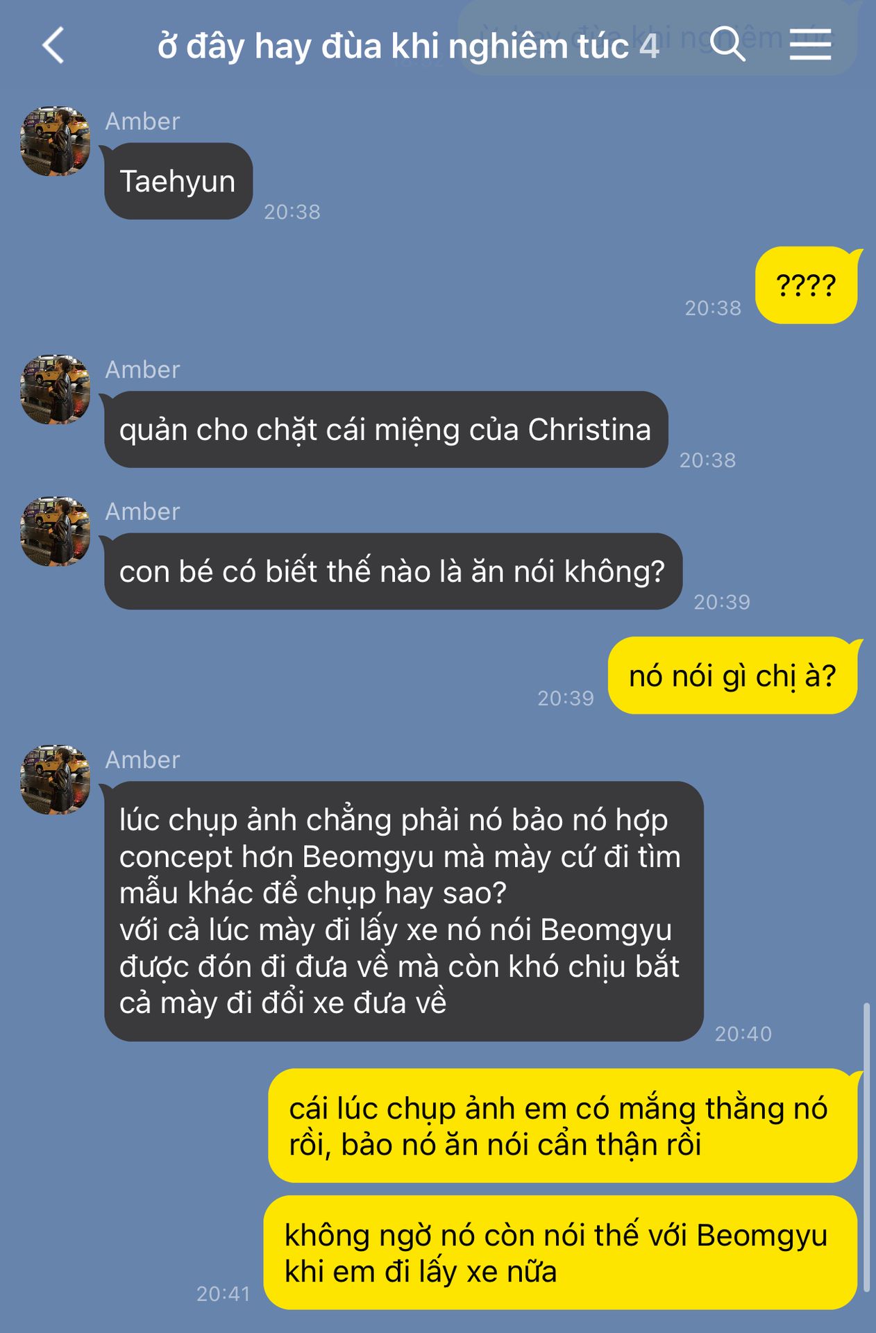 này là nguồn cơn của việc Kang Taehyun nhắn tin mắng Christina chứ không phải do Beomgyu mách Taehyun đâu, mà là Beomgyu mách anh em rồi anh em hùa nhau đi mách Taehyun, bạn bè phải chất lượng thế 😉