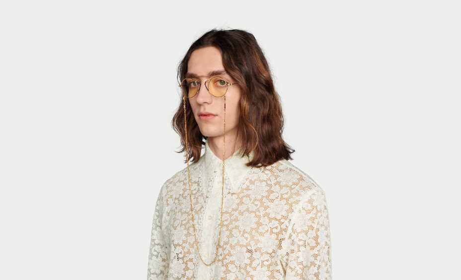 Thịnh Tuy đeo cặp kính gọng vàng trên mũi, hai sợi dây xích mảnh kéo ra sau cổ[5], chiếc áo sơ mi rộng rãi cởi hai cúc, trông anh cực kỳ lịch sự phong lưu.