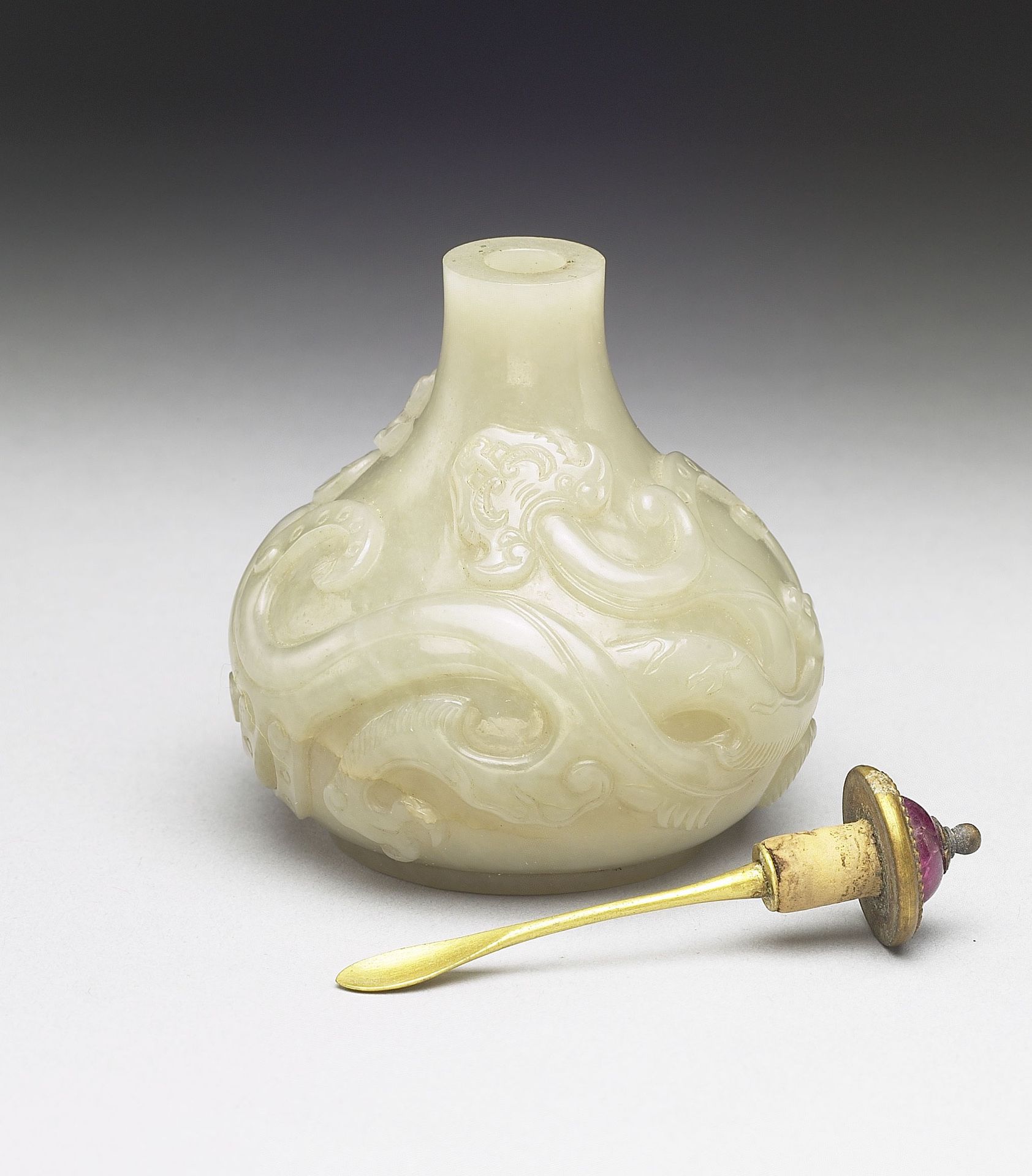 (*)Bình đựng thuốc hít - 鼻烟壶 (pí yān hú): là một bình đựng (thuốc hít/thuốc lá dạng bột) có nguồn gốc từ phương Tây nhưng đã được người Trung Quốc biến tấu và phát triển thành một loại hình nghệ thuật thu nhỏ tinh xảo. Ban đầu, 鼻烟壶 được sử dụng bởi quý tộc Trung Quốc thời Thanh để chứa thuốc hít dùng để tỉnh táo, nhưng sau đó đã trở thành một món đồ sưu tập và thưởng ngoạn có giá trị nghệ thuật cao, được làm từ nhiều chất liệu quý và kỹ thuật chế tác đa dạng.