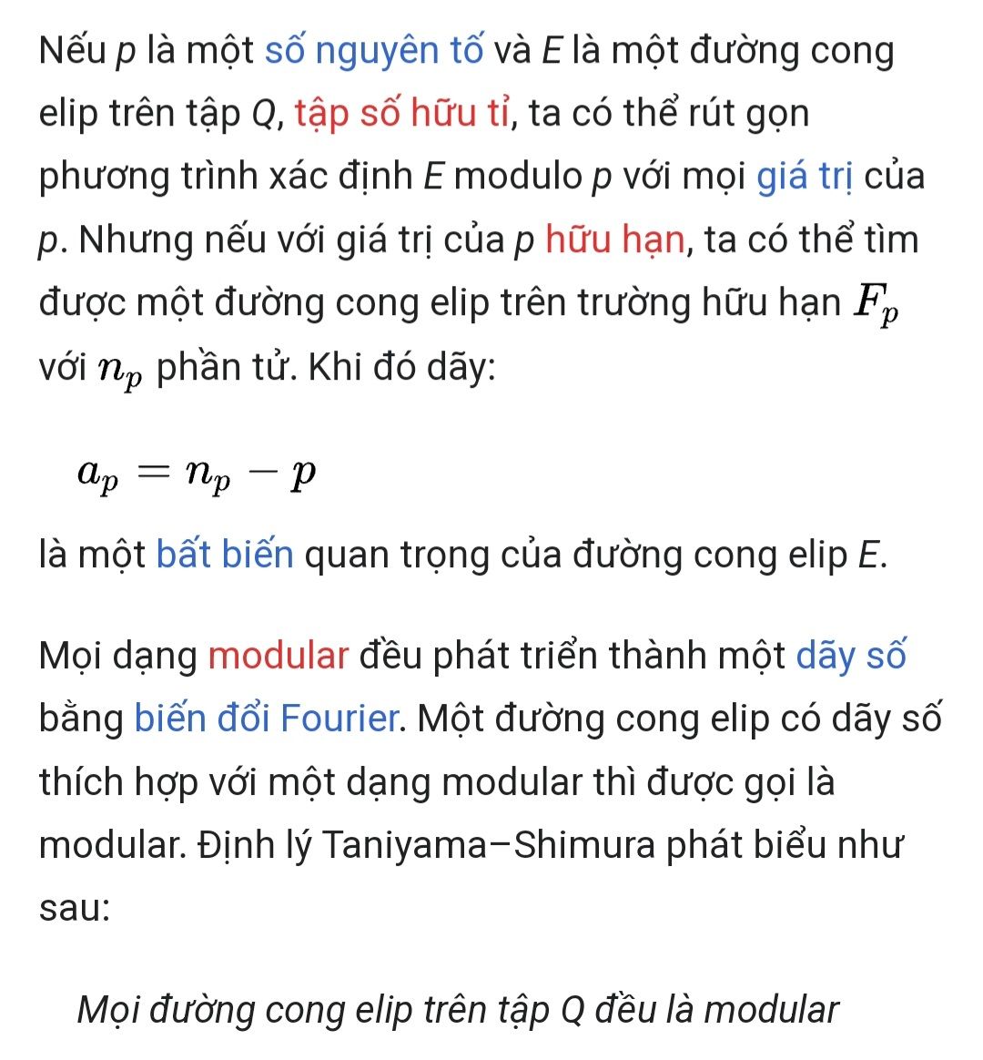 Tư Thần dừng xe trước cổng của khu nghiên cứu, đột nhiên hỏi: "Cô còn nhớ đề toán đại học không? Tôi đang cố nhớ lại, hình như có liên quan đến định lý Shimura (1)."