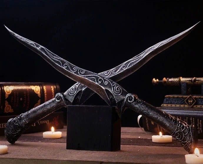 Dường như chúng không phù hợp với hình dạng của bất kỳ con dao găm nào trong lịch sử, lưỡi dao xoắn và thô ráp, giống như một con rắn độc ẩn nấp, không để lại dấu vết nhân công rèn đúc, như thể nó được hình thành trực tiếp từ sự ràng buộc sâu xa nào nó, và hấp thụ tất cả ánh sáng chiếu vào nó.