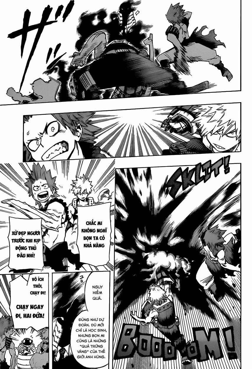 Có lẽ chúng định áp đảo anh hùng chuyên nghiệp bằng số lượng,và chúng định dùng học sinh lớp 1-A làm tốt thí sao? Đúng là một lũ đần độn.Xét theo ngoại hình,số lượng những kẻ nguy hiểm thật sự chỉ rơi vào 4-5 tên mà thôi.Đó là suy đoán của Todoroki