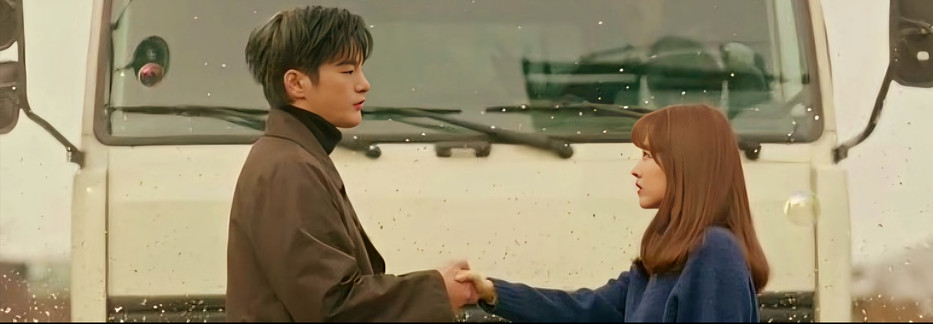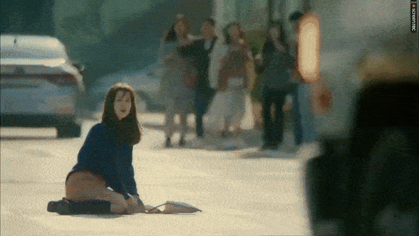 Suddenly right before the white truck was about to hit her , Time pauses. Dong-kyung looks around in amazement, and her eyes land on Myul-mang still standing without moving an inch on the opposite side.