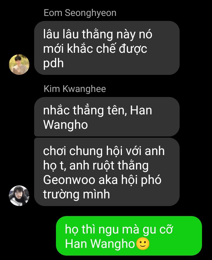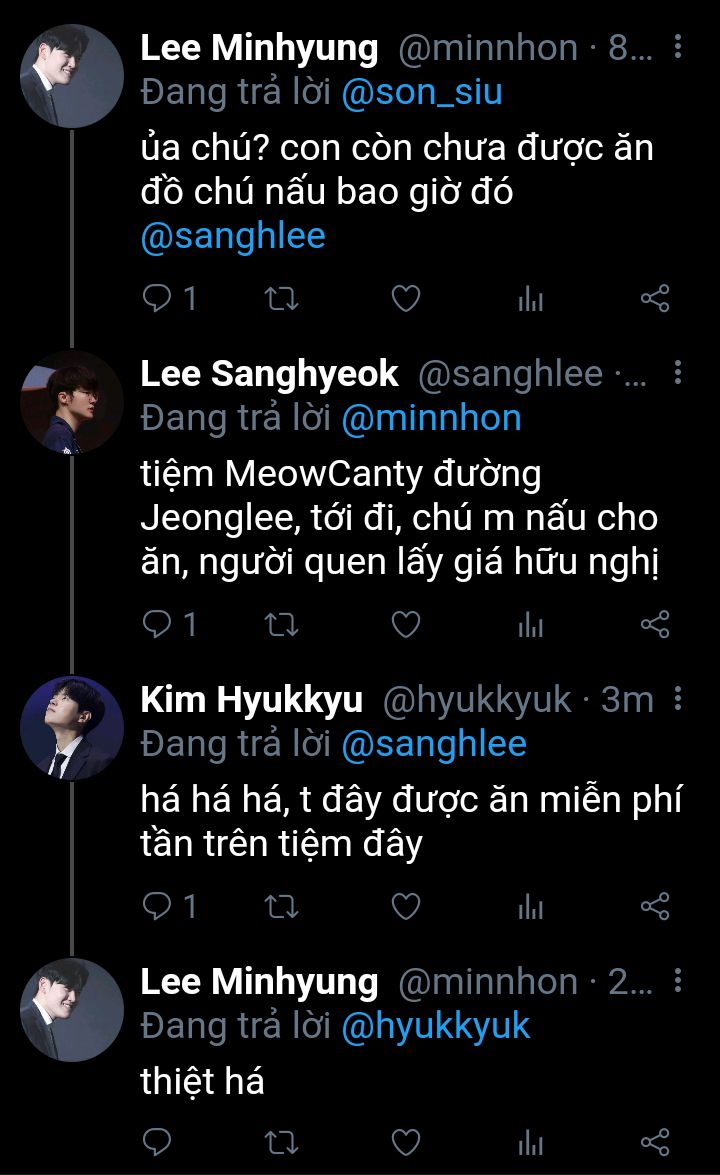 cầm cốc cacao nóng, nhìn vẻ mặt này chắc không phải lần đầu tiên Kim Hyukkyu bị đánh hội đồng. Lee Sanghyeok đứng dậy, để bạn mình ngồi vào cái ghế chính giữa, chuẩn bị mở phiên tòa xét xử.