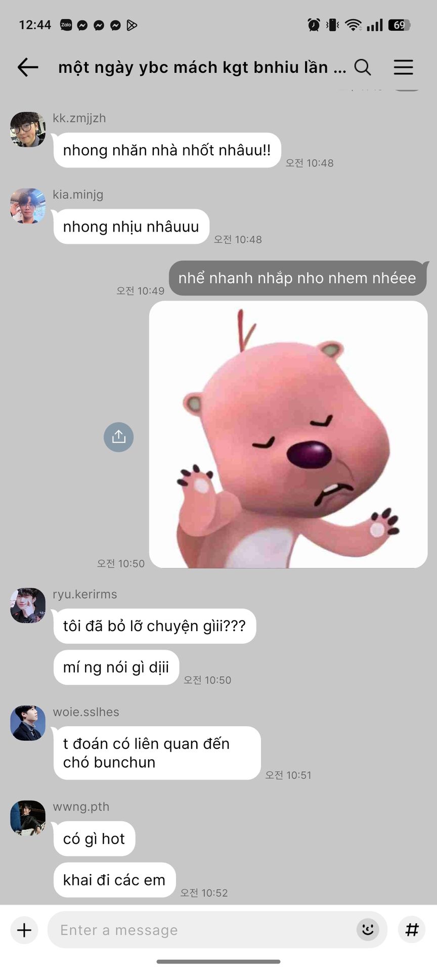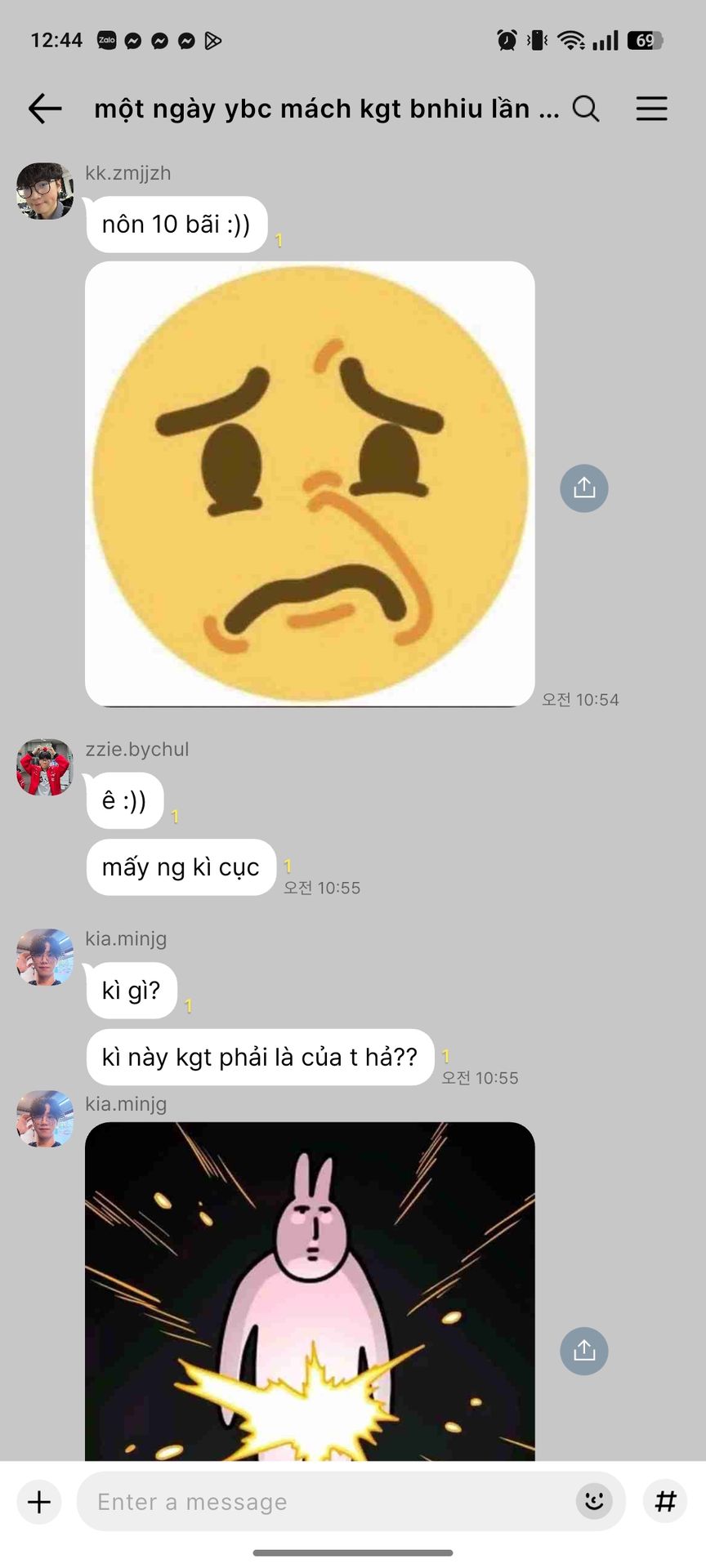 anh tiện thể vớ lấy điện thoại của người yêu mà nghịch phá. jongmin đang chọt chọt vui vẻ với con game lỏ mà mình kiếm được từ đề xuất của yu  byungchul thì tin nhắn nhóm chat của nhóm kim wontae chắn ngang màn hình.