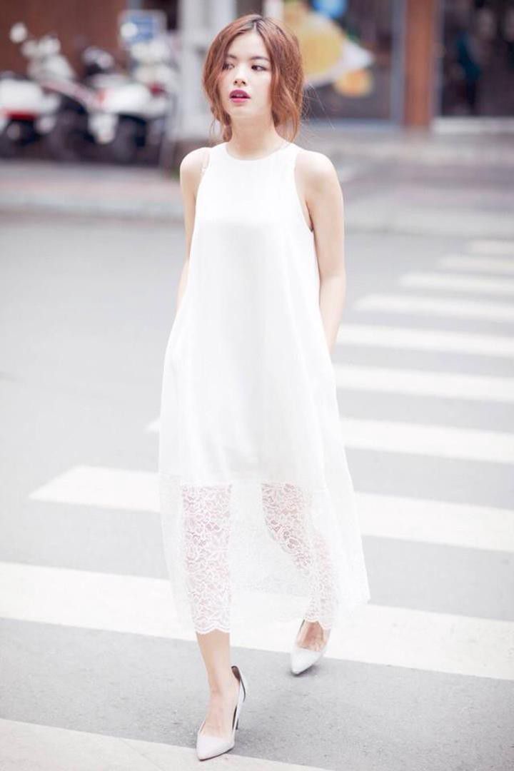Mặt tôi đỏ hết cả lên , với lấy đại bộ đồ nào đó rồi chạy nhanh vào phong thử đồ . Vào tới phòng thử đồ thì nhìn lại bộ đồ mình đang cầm là một cái váy màu trắng nhìn rất đẹp , nó dài hơn đầu gối rất phù hợp cho việc đi biển , nó cũng rất đơn giản , thoải mái 👇🏻👇🏻👇🏻