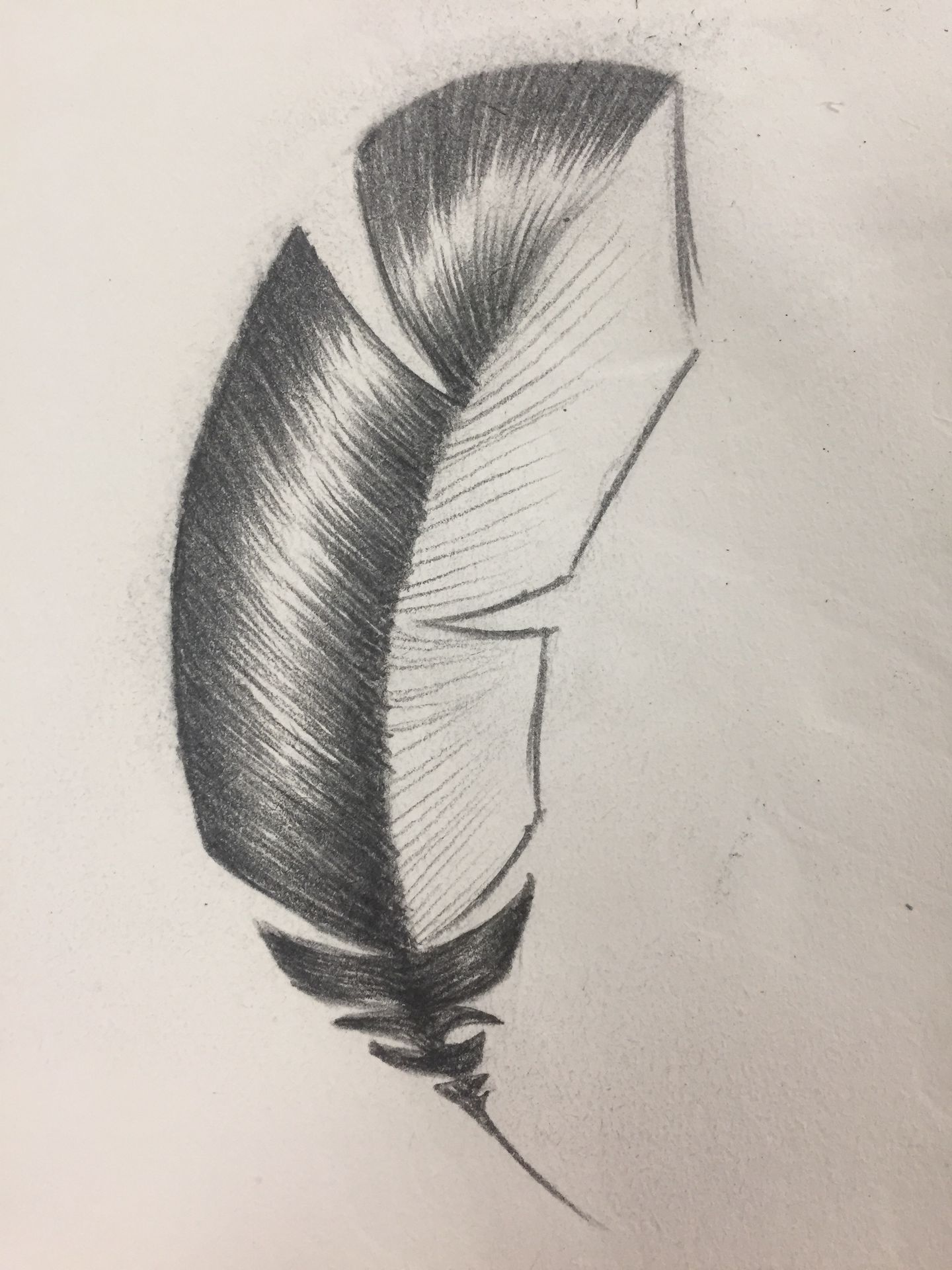 Tip: Make your feather's line different lengths, and flick the pencil to create a hairlike texture.