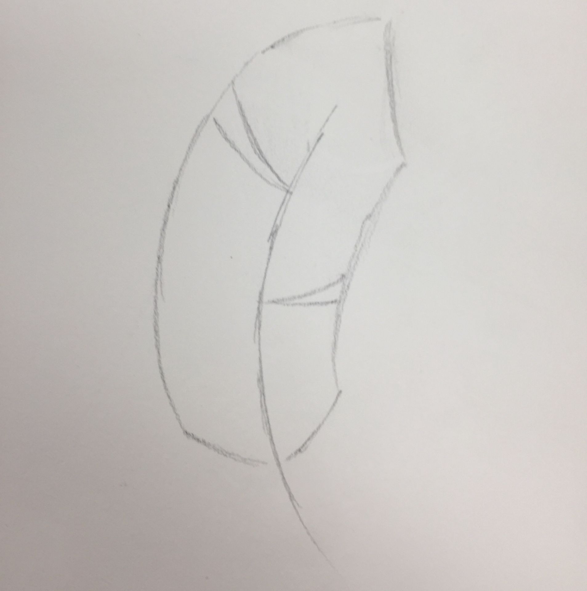 5 : Erase the lines, making the triangle sections separate from the feather. Add a few more chunks getting smaller towards the end.