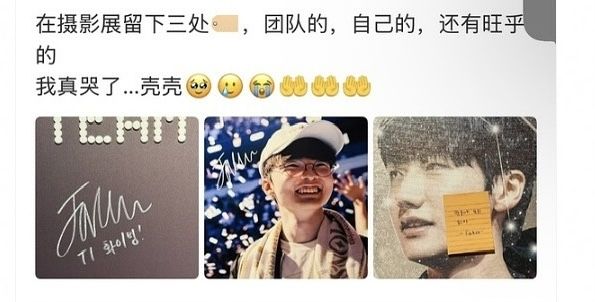 Ảnh: Tại triển lãm để lại 3 chữ ký: ảnh nhóm của T1, ảnh của chính mình và ảnh của Wangho. Tui khóc mất 🥹😢😭🤲
