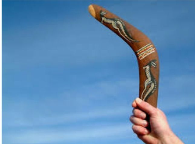 (Ảnh này là boomerang, có dạng chữ V, sau khi ném sẽ quay về vị trí ban đầu.