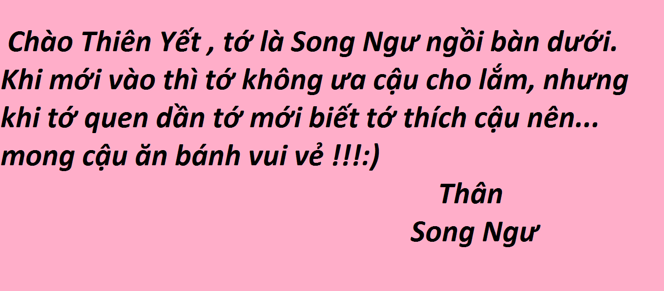 Tôi đến ngăn bàn Yết và thấy một vài cái Cupcake , tôi không để ý cái bức thư ở trên nên để vào xong tôi chạy đi luôn. Cuối giờ tôi ở lại trực nhật và thấy Thiên Yết mang 2 hộp bánh mang về. Tôi rất vui :) Tôi chạy nhanh về nhà và thấy 1 bông hoa là từ Sư Tử gửi tới cho tôi . Haizzz lại thêm một bông hoa nữa vì tính đến nay cậu ta đã gửi cho tôi hơn 100 bông hoa -_- Nó như vầy nè :