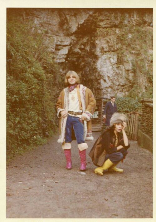 "Together they (Brian Jones and Anita Pallenberg) forged a revolutionary androgynous look, keeping their clothes together, mixing and matching not only fabrics and patterns, but cultures and even centuries. Jones would parade the streets of London wearing a Victorian lace shirt, floppy turn-of-the-century hat, Edwardian velvet frock coat, multi-coloured suede boots, accessorised scarves hanging from his neck, waist and legs along with lots of antique Berber jewelry. According to journalist Al Aronowitz, 'Jones was the first man I ever knew to wear costume jewelry bought in the ladies' department at Saks'. At Courtfield Road (Brian's London apartment), Chelsea's power pair played host to a constant stream of beautiful people from John Lennon and George Harrison to Sonny and Cher, Donovan and Jimi Hendrix. Trendy film maker Donald Cammell, heir Paul Getty, and Britain's bright young thing would gather at the South Kensington flat to smoke dope, drop acid and discuss the issues of the day. Observed Anita: 'Brian was very interesting socially. He dealt with the fame and all that. He picked the best, the cream, Dylan, Terry Southern, Warhol. Brian set the pace'."- Geoffrey Giuliano, Paint It Black - The Murder Of Brian Jones, p 47-48.