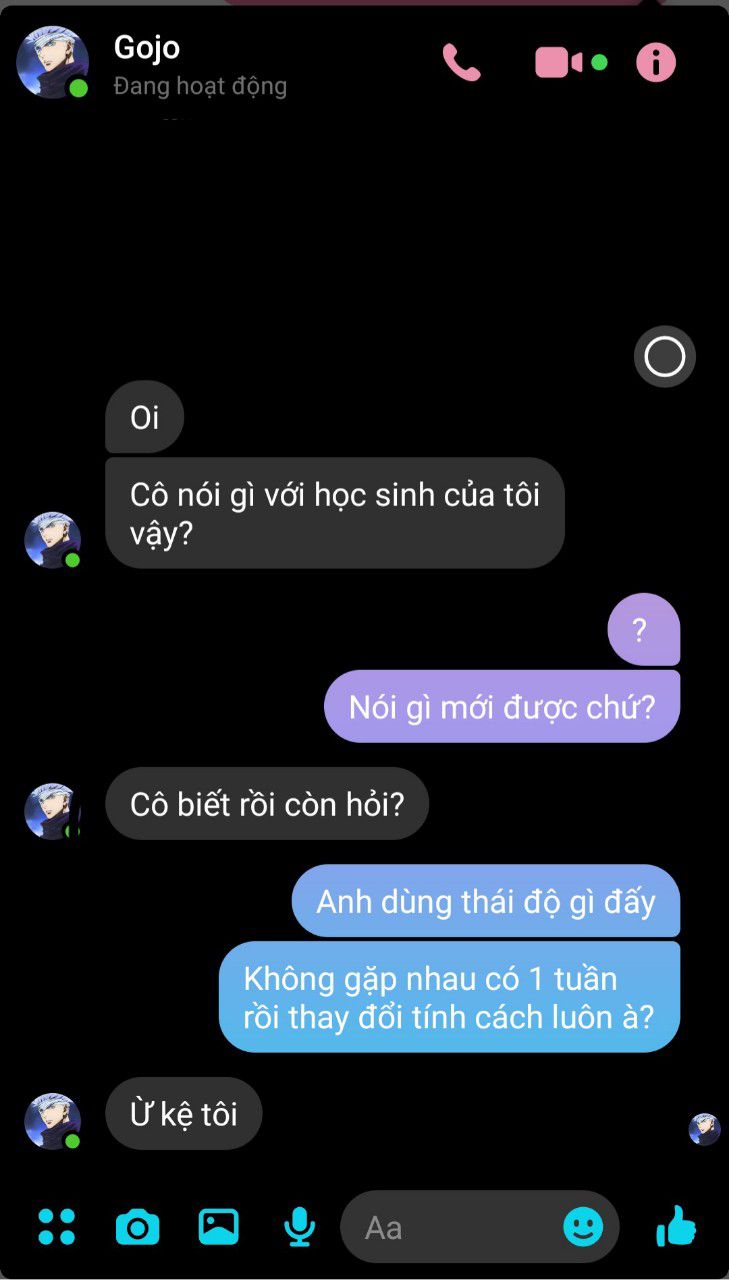 Tối nay cũng khá rảnh rỗi, bạn lấy điện thoại lướt newfeed khoảng 1 lát thì thấy được tin nhắn của Gojo