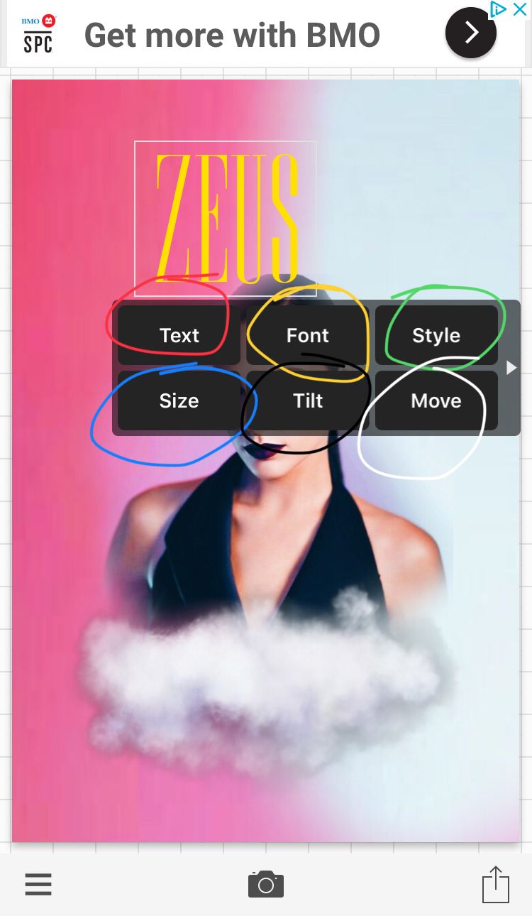 Open your completed graphic, and click anywhere on the photo, then click "Add text."