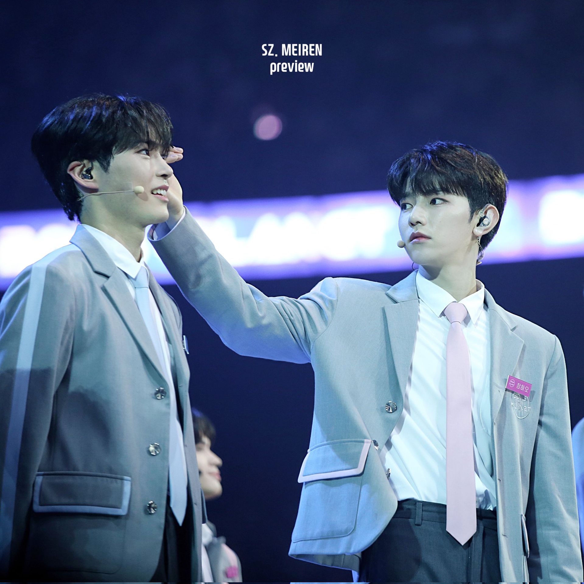 - "Không! Bảng tên đều là của em hết!"_Yujin làm nũng kêu lên, sau đó quay qua năn nỉ mấy anh cùng nhóm đưa cho mình bảng tên. Jiwoong, Matthew, Seungeon đều cười bất lực đưa bảng tên cho em út nhà mình, Hanbin thấy đứa nhóc đáng yêu cũng gỡ bảng tên của mình ra định đưa cho Yujin thế nhưng lại bị Zhang Hao cản lại.